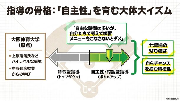 大阪体育大学で培われた自主性を重んじる指導